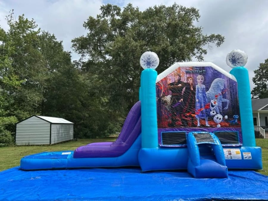 Bring the magic of Frozen straight to your backyard with our enchanting Disney's Frozen Combo! Perfectly themed for Disney's Frozen fans, this unique bounce house is the ultimate centerpiece for birthday parties, family gatherings, and special events. Whether you're hosting a Frozen-themed celebration or simply want to surprise your little one with something unforgettable, the Frozen Combo bounce house will deliver smiles and laughter all day long.