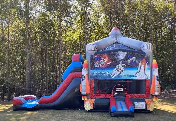 Transform your next event into an intergalactic adventure with our spectacular Outer Space Combo! Perfect for birthday parties, school events, or community gatherings, this bounce house combo will send kids’ imaginations soaring to the stars. Featuring vibrant space-themed graphics, a spacious bouncing area, and an exciting slide, the Outer Space Combo guarantees hours of high-energy entertainment for children of all ages.
